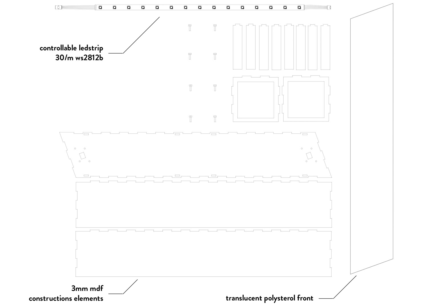 Light is used as a key design element to tell abstract stories as well as to construct and deconstruct spatial atmospheres. The lighting system is lightweight and modular designed to create different sculptures and shapes for a wide range of room conditions. Each LED element is individually controllable with real time feedback by a custom software.