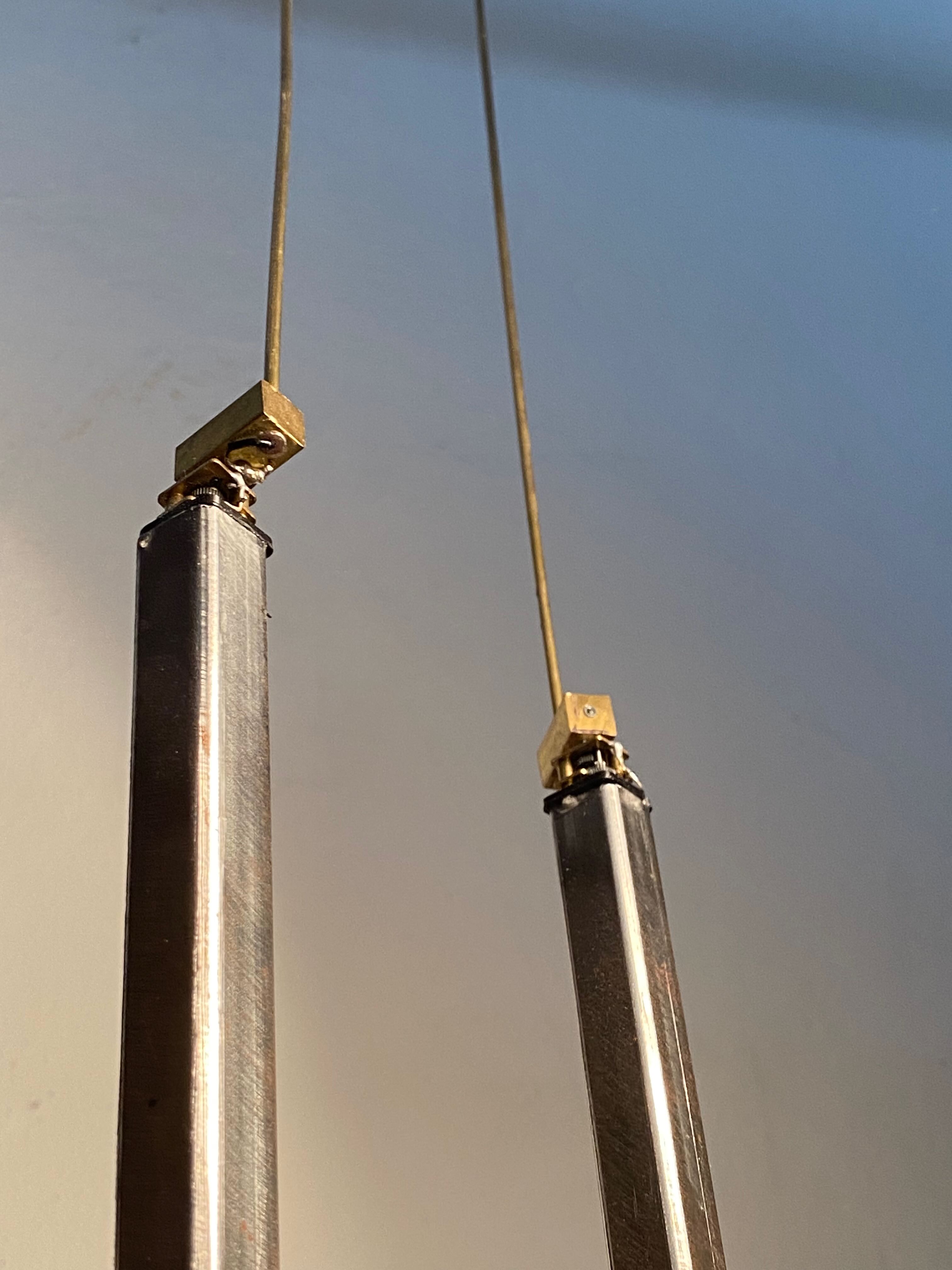 When the installation is operating normally, the brass rods move abstractly driven by the amplified audio signal. As described above, they change the sound signal into a distorted substance that filters out high tones.