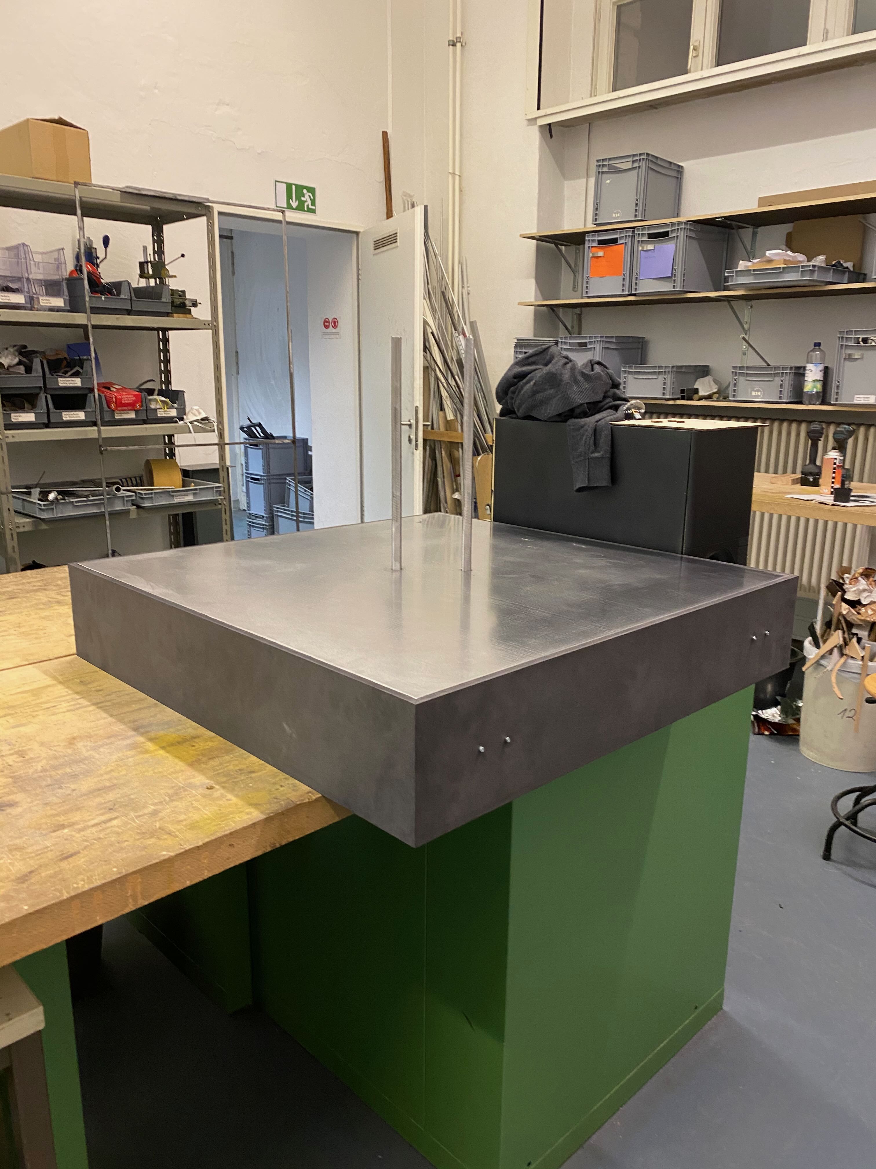 To get an impression of this effect here is an example. The original soundscape and 15 seconds later the same soundscape running through the engines.The underlying soundscape for the installation, which was produced by Marcel Haupt and with the help of Dirk Erdmann, is based on sampled sine frequencies that flowed through the components of the installation.Depending on how often a basic frequency was played and re-recorded by the components, the more it was distorted from the raw material. An example of a raw material sine frequency and 15 seconds later the same part of it is pulled through the motors several times can be heard here:These recordings are the foundation of the soundscape. What was special about this process was that the complete production was done on the installation itself. Only after the creation of the soundscape was finished, the audio file was listened to on regular speakers, which of course differed a lot from the output changed by the installation. The soundscape through the installation as well as the raw file can be listened to here: