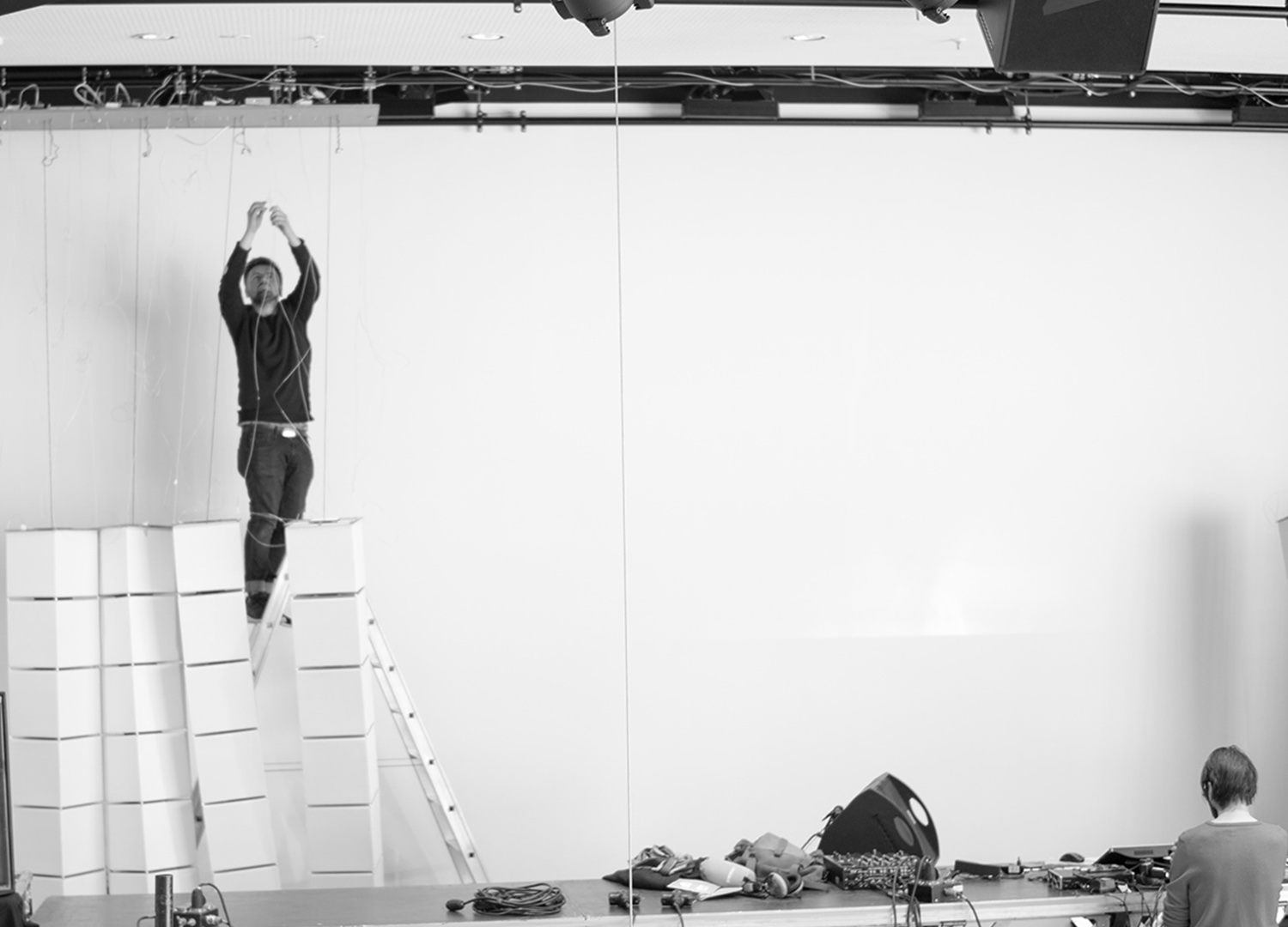 The installation and live performance „magnetic and coders“ messes with the viewer‘s perception of space and creates an immersive experience through the synergy of sculpting soundscapes. Stacked cubes construct and deconstruct the room continuously with kinetic movement and are enhanced by a projection mapping.